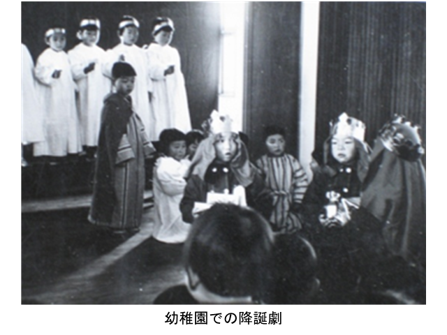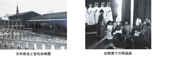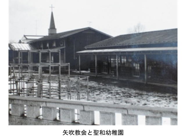 1961年、聖和幼稚園(現在の認定こども園ポプラの木)が開園となり、矢吹教会はより地域と密接した教会となりました。教会と幼稚園の両輪の歩みは、その後歴代の牧師たちへと引き継がれ現在に至っています。
