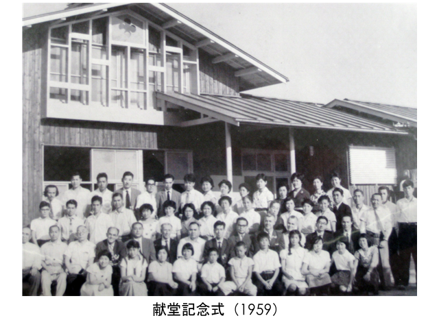 1958年には丹誠牧師を主任牧師として招き、また翌年1959年には現在の場所に新会堂を建設するなど、自給教会へと着実に成長していきました。この会堂建築もラクーア伝道を通しての海外からの援助によって実現した業でした。